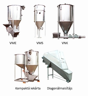 Vertikālmaisītājs „VMK” ar horizontālo gliemežtransportieri, uzstādītu piemaisīšanas piltuvi un pievadcauruļu ieejām. Piedziņa ar motoru un reduktoru, kas aprīkots ar elastīgu sajūgu. Pateicoties šai konstrukcijai, grūti plūstoši komponenti tiek efektīvāk padoti uz gliemežmaisītāju.