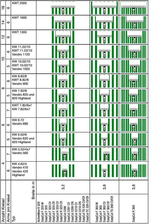- Tā kā zaru garumi ir dažādi, tiek nodrošināts KRONE „ķemmes” efekts